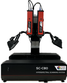 ハイパースペクトルカメラは、プッシュブルーム方式といった撮像方法が一般的であり、カメラまたは測定対象を動かしてスキャンする必要があります。そのため撮影にはベルトコンベアなどでサンプルを動かすかカメラ自体を動かすシステムが必要になります。弊社の紹介するハイパースペクトルイメージングシステムは測定に必要なカメラ、コンベア、光源、制御ソフトが全て一体となっており、導入が容易です。また測定、解析も一つのアプリケーション(SpectraSENS)内で完結し、全てをセットで提供できることが大きな特徴です。